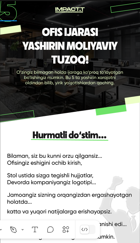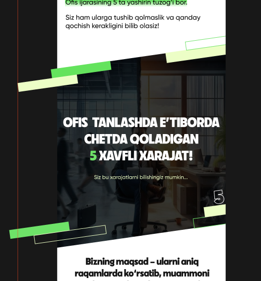 Shunchaki tasavvur qiling: birgina noto‘g‘ri ofis tanlovi tufayli 30-50 million so‘m ortiqcha xarajat qilishingiz mumkin!